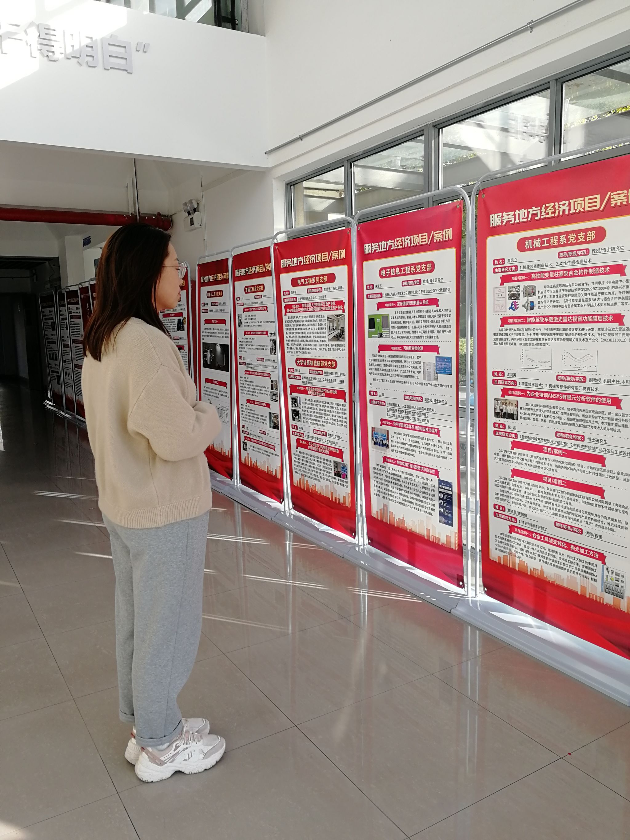 今年是“八八战略”实施20周年,为彰显学院发挥党建引领作用、助力地方经济发展的成效,营造爱岗敬业、奋发有为、干事创业的氛围,鼓励教职工发挥专业优势,为地方高质量发展注入科技力量。学院党委举办“党建领航 促进地方经济发展”成果展。成果展于10月26日至11月28日,先后在兴礼楼、博识楼、图书馆二楼大厅展出。