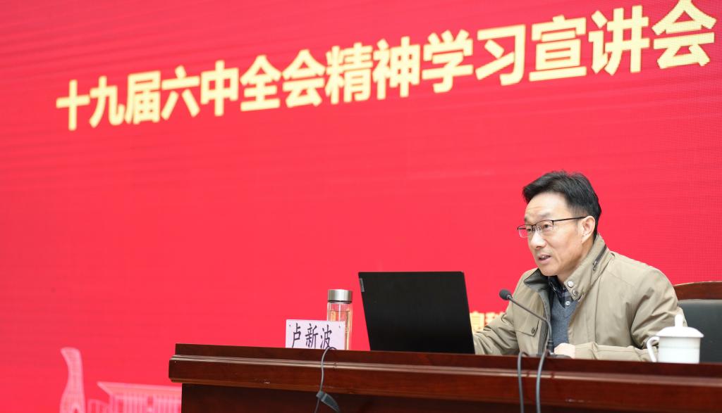 12月16日下午,学院在TCL报告厅举办党的十九届六中全会精神学习宣讲会,嘉兴学院党委书记卢新波到会作宣讲报告。学院党政班子成员、全体教师参加宣讲会。宣讲会由学院党委书记谢宏主持。