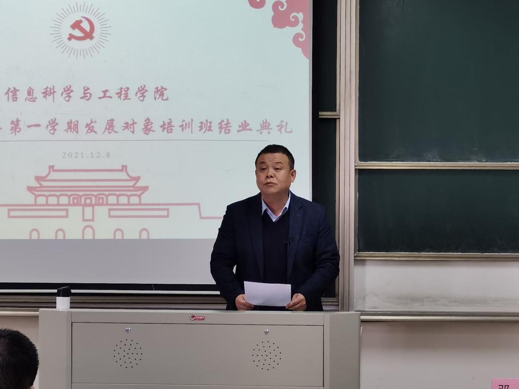 2021-2022学年第一学期党员发展对象培训班结业典礼于兴礼楼512教室举行,院党委副书记邓琨,学生党员之家主任张圣晨出席了本次典礼,发展对象全体参加。