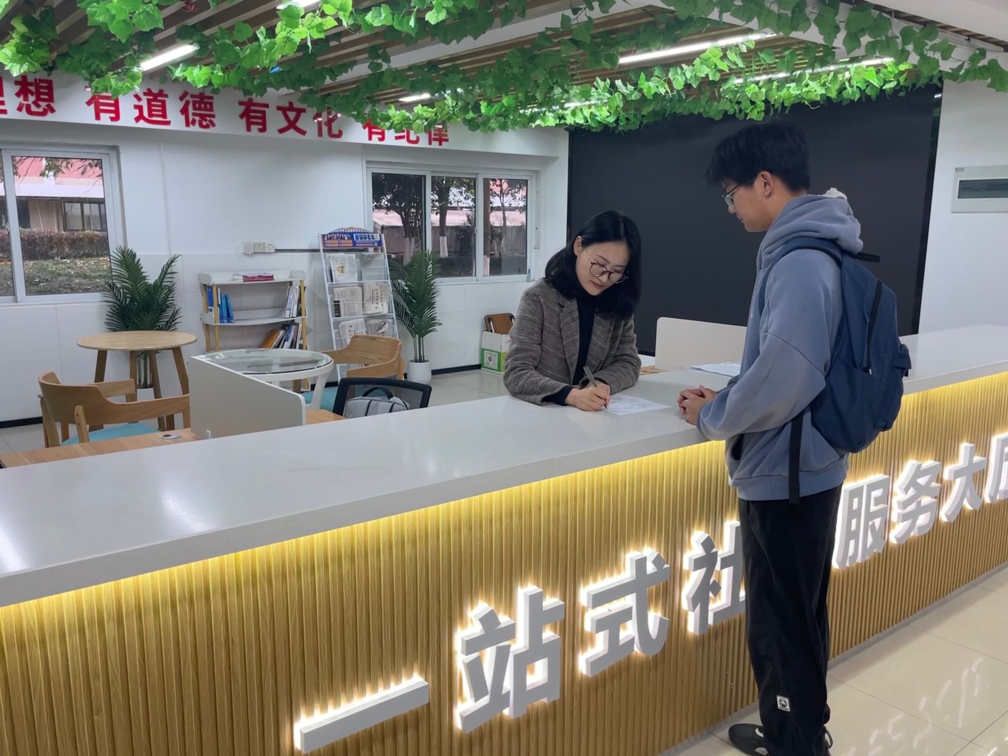 设立24小时“职得”能量驿站,就业指导不打烊,搭建供需连心桥。驿站积极打造“一轴多翼”就业服务圈,链接一个就业服务专线、一个就业服务台、一个就业大讲堂、一个政策宣讲团。2024年以来,就业服务专线已经接听毕业生、企业电话近百个;就业服务台依托一站式社区,开展生涯咨询、简历诊断、面试指导等就业服务超百次,同时服务台还提供面试服装租借、面试证件照拍摄等服务,全方位为毕业生就业保驾护航;就业大讲堂分设青年讲堂、企业家讲堂两个栏目,目前已邀请企业家、青年博士、优秀校友开展讲座十余次,深受学生欢迎;同时,由巾帼文明岗岗员组建的就业政策宣讲团也持续走进班级、走入寝室进行政策宣讲,帮助毕业生了解就业形势、理解就业政策。