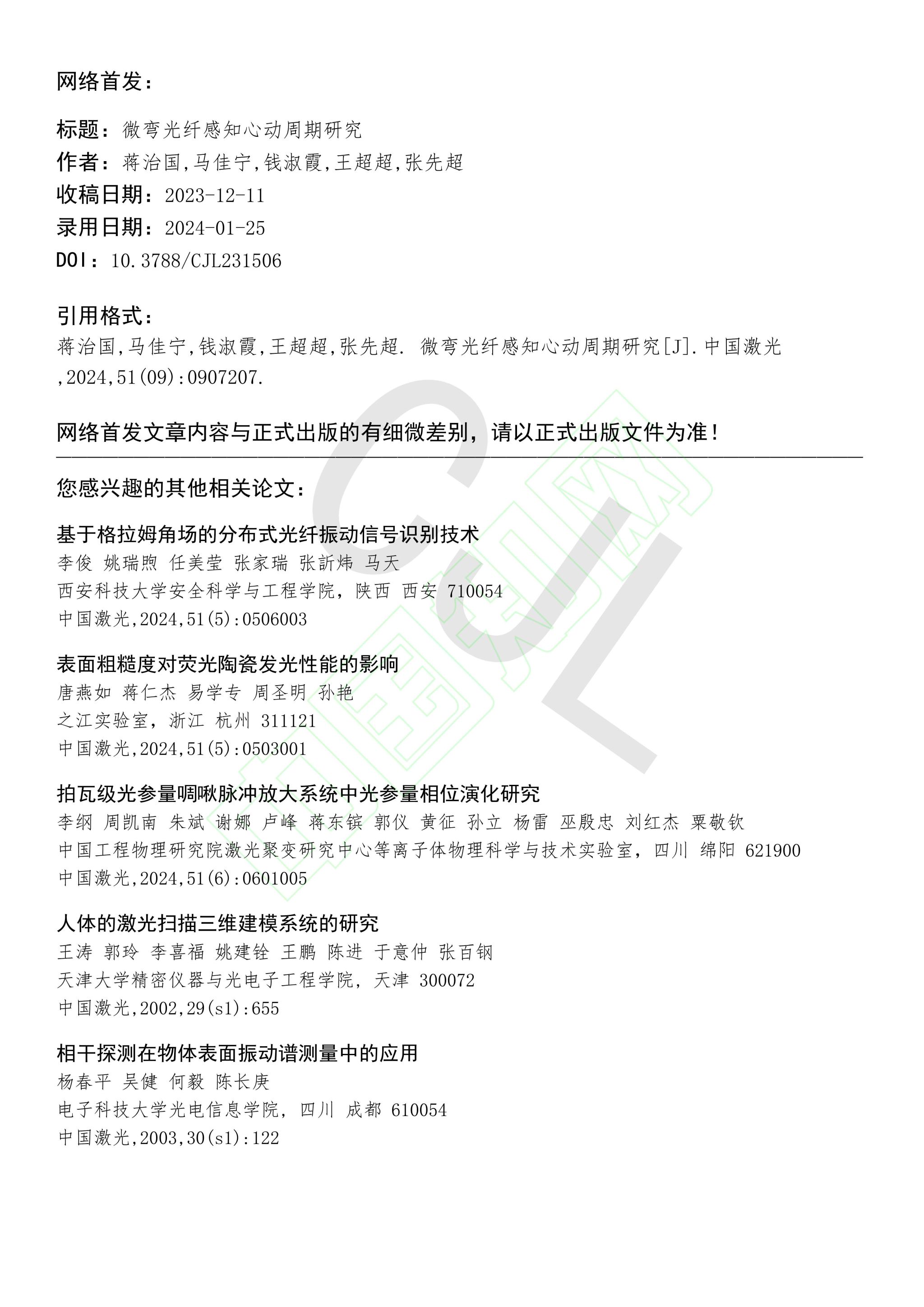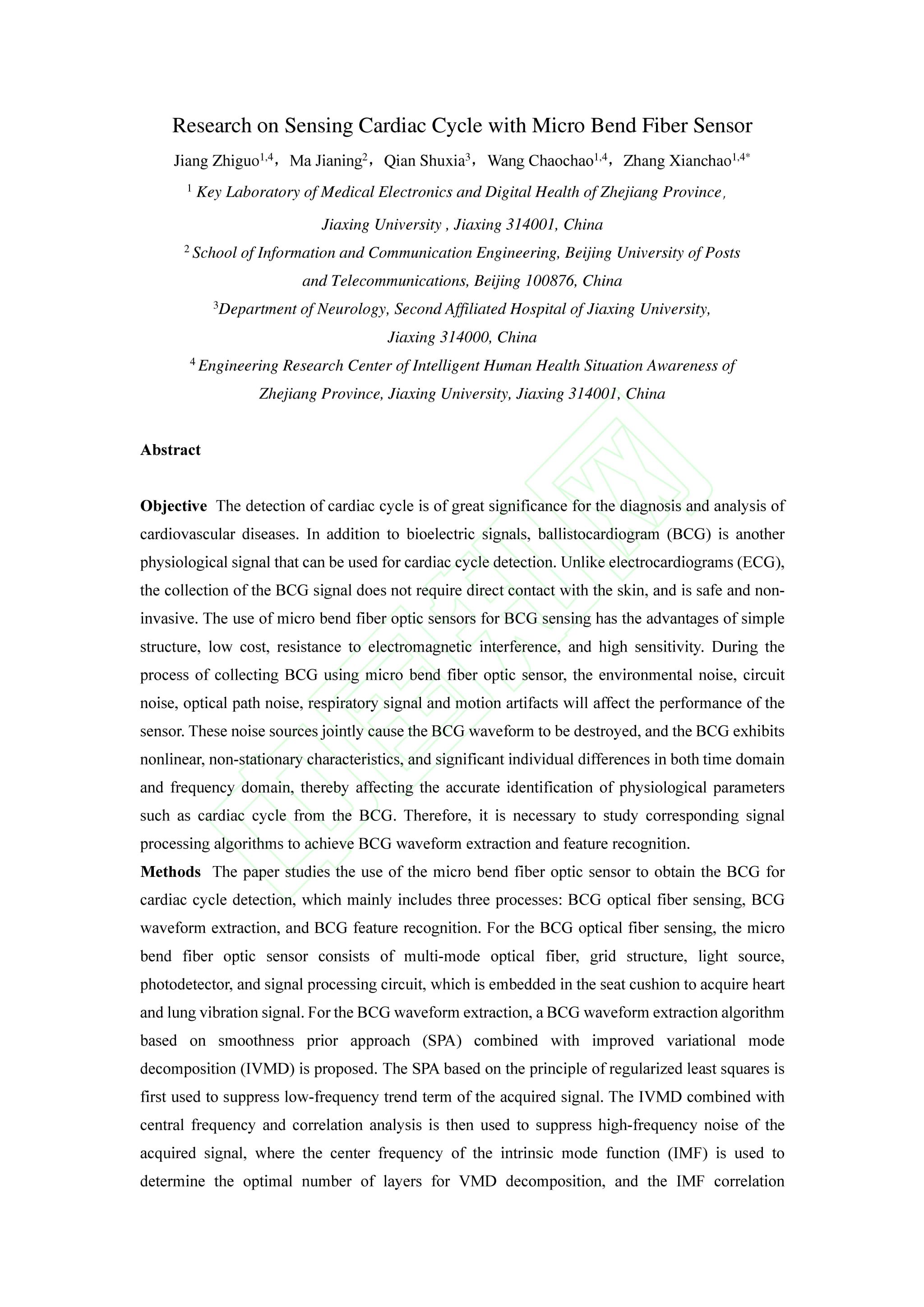 【论文】蒋治国、王超超、张先超等,微弯光纤感知心动周期研究
